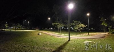《第一花园昌明大马人民公园》增加照明灯以及增设运动器材后,晚间也吸引许多居民前往散步运动。