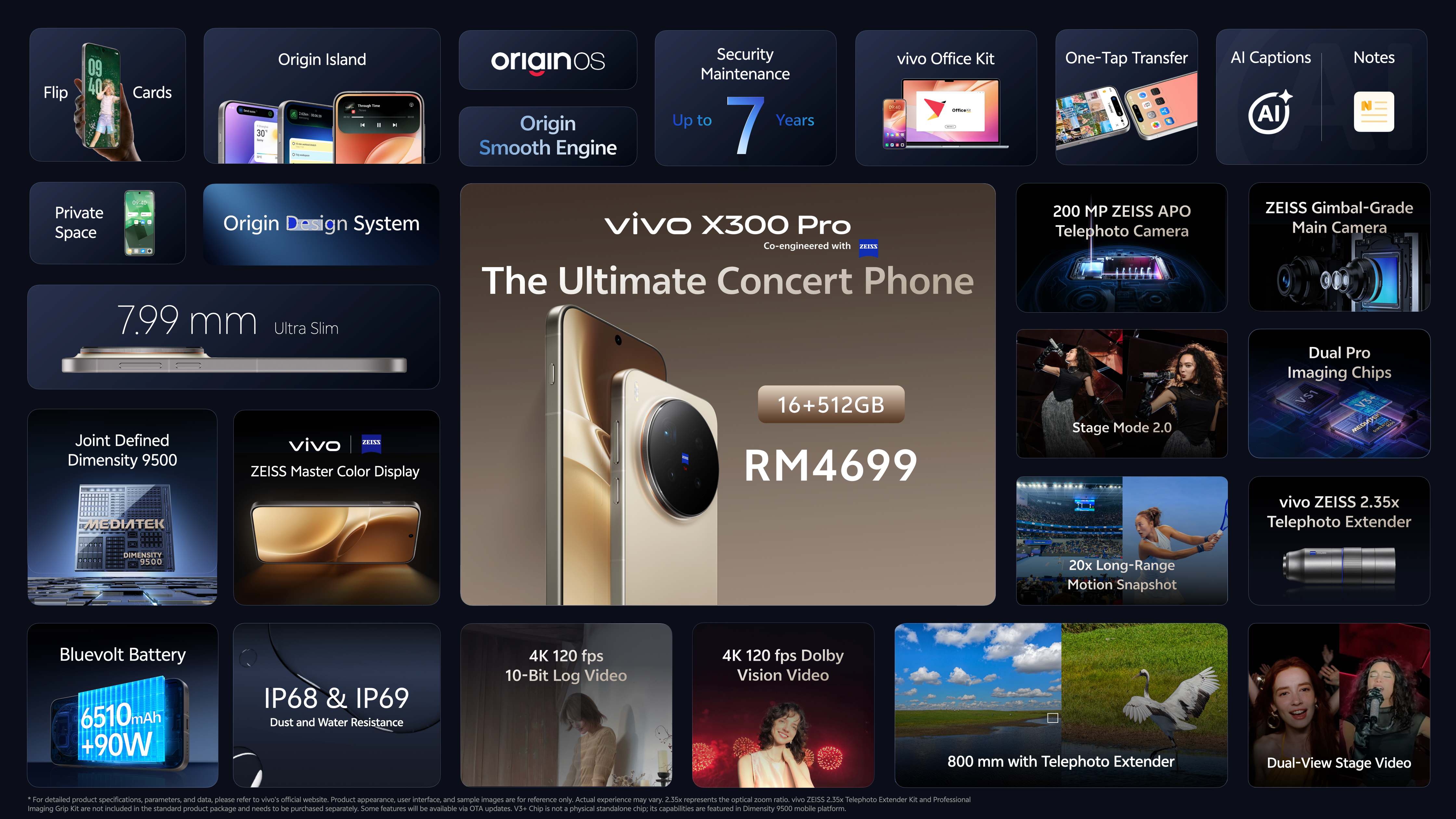 X300 16GB + 512GB 售价3899令吉起,X300 Pro 16GB + 512GB 售价4699令吉起。