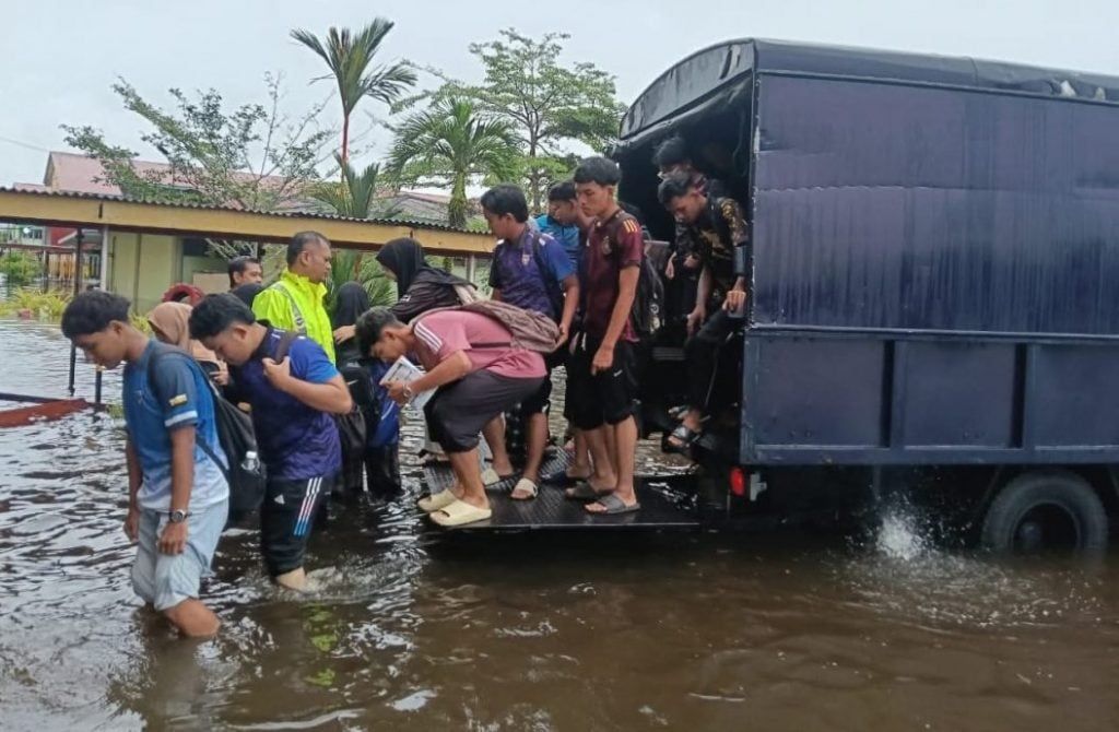 阿都拉曼中学水深至膝盖 警罗里载167师生到考场