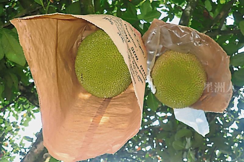 他表示,蜜糖波罗蜜经年长果,从开花结果至收成需要约3个月,当波罗蜜的果实长至约1呎时,须用厚纸袋包裹,避免遭到害虫尤其是果蝇的侵袭。此外,须定时施肥及农药以消灭害虫。