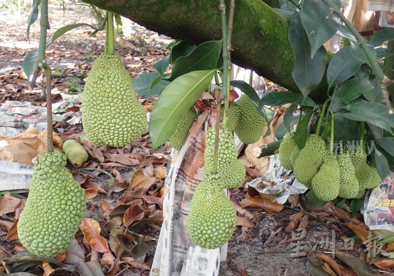 除了蜜糖波罗蜜,陈顺发也栽种了榴梿尖必叻,一种具有榴梿及尖必叻混合味道的水果。