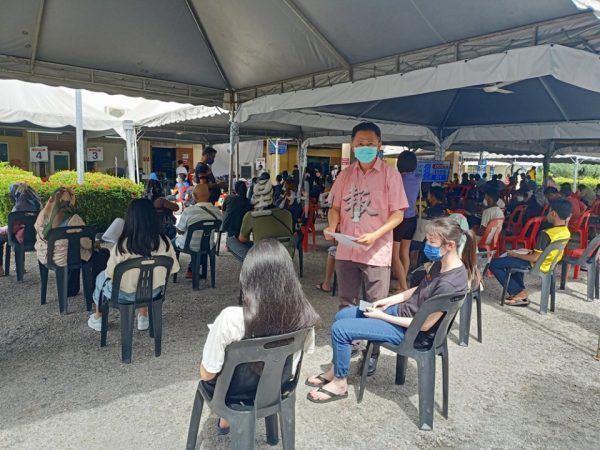 他说,接种中心开放12岁以上登门接种进入第二天,但必须过了12岁生日,即使提早一天也不允许;当中300剂疫苗,上午时分已施打了三分之一。
