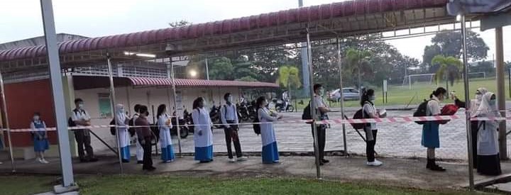 校长黎镇光和行政老师们今日一早便守在指定的校园入口处,引导学生测量体温、整理仪容后再进入校园。该校复课前已做好准备工作,整顿校园,进行消毒工作,以保持干净卫生整洁。