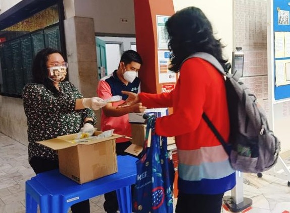 育才独中高三学生今日复课,为了确保校园的防疫安全,让家长放心,校方除了严格遵守学校复课标准作业程序,也于今早派发自测盒予教职员自行检测,降低校园的冠病入侵风险。