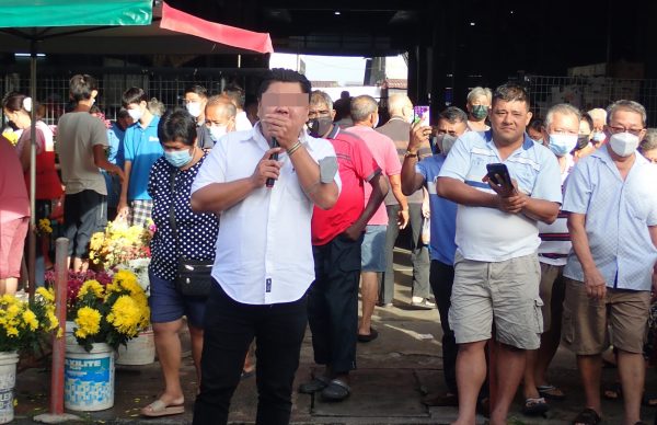 该男子是在论坛开始不久,便手持麦克风站在巴刹大门口,面对著茶室指责行动党虽然做了22个月的政府,却无所作为,还要继续欺骗人民,不做事只空口说白话等。