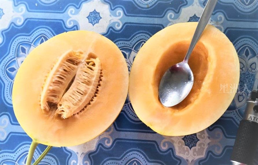 “我已经试过种10多个品种的蜜瓜,包括日本和新疆品种,可是日本的比较软不耐放,新疆的不够甜,果肉欠口感,最后还是现在这个台湾品种的最好,够甜,果肉爽脆,又耐放,如果没有冷藏可以放2周,如果冷藏可以放上2个月。”