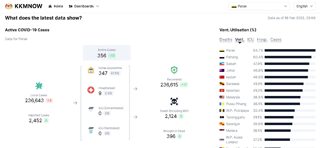 根据根据KKMNow的数据显示,霹雳州目前的累计确诊病例为23万6643宗,昨天新增的4宗病例全部属于本土感染。