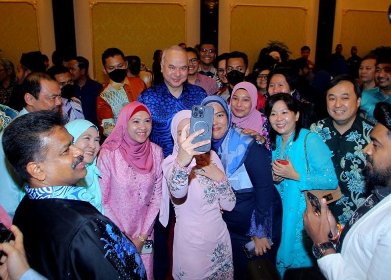 (江沙28日讯)配合2023年国家记者日,霹雳州苏丹纳兹林沙殿下昨晚在江沙依斯干达里亚王宫设晚宴,与约300名媒体人员聚餐,媒体人员也与殿下开心合影留念。