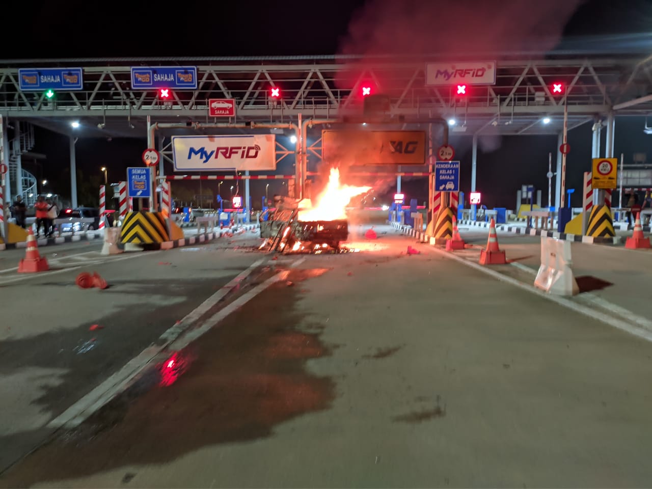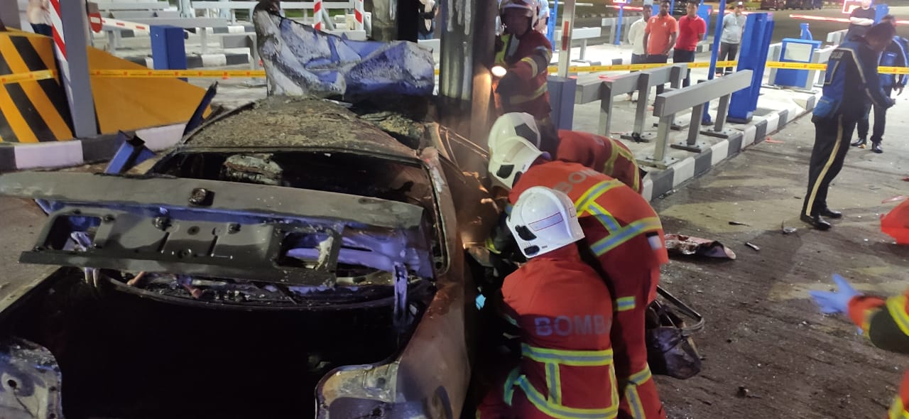 (实兆远15日讯)一辆轿车于昨晚不知何故,撞向西海岸大道的收费站分界堤,造成轿车起火燃烧,以致受困车内的司机丧命。