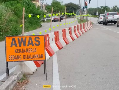 她说,拱桥轻工业区交通灯左旁的小路口,已设置红白色防撞塑料隔离墩作为暂时性封闭,之后此小路将采取永久性封闭。其因是驾驶者不愿等待交通灯转绿,急速转入此旁小路口,经前方另一个出口再驶向主要大路,导致该处时常发生交通事故。