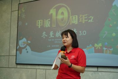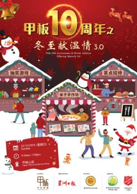 甲板集团冬至献温情3.0暨圣诞节庆典是甲板集团欢庆10周年系列活动之一,由甲板集团主办、星洲日报为媒体合作伙伴、霹雳会甯公会妇女组协办,受惠单位是新希望儿童院与怡保救世军儿童院。