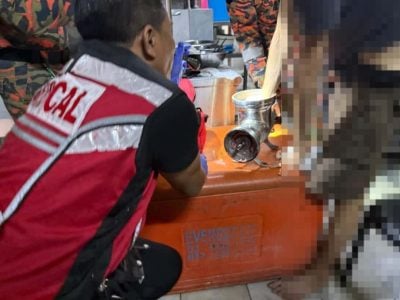 此案发生在珠宝,根据霹雳州消拯局发布的消息,于今晚8时17接获电话通报,美露拉也消拯局即刻动员,在10分钟抵达现场,发现41岁伤者的右手仍夹在绞肉机内,惟他保持清醒。