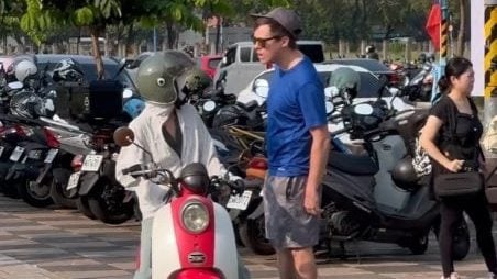 台湾一名女子把摩托直接骑上人行道,疑似要进入一旁的停车格,却不慎擦撞到一个路过的外籍男子,结果遭对方以流利中文怒斥,直接让现场的民众看得目瞪口呆。