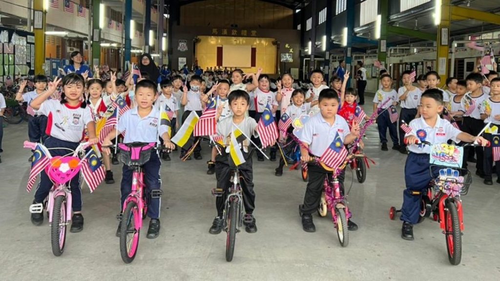 十八丁培英华小师生骑着以国庆为主题装饰到得美奂美仑,浩浩荡荡地参与游行,沿途吸引村民驻足观看,纷纷拿出手机拍照、欢呼。