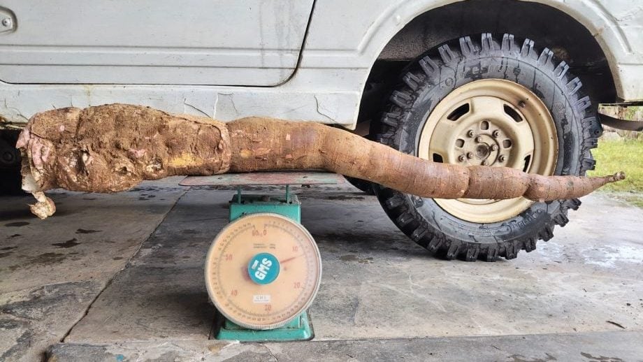 和丰女园主挖出4呎长12.5公斤巨型木薯