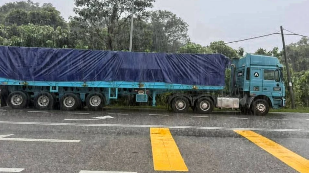 (江沙8日讯)一辆拖格罗里今日中午在南北大道第256公里处朝北路段(介于美诺拉隧道至江沙路段)翻覆,导致北上车道受阻,交通陷入瘫痪。