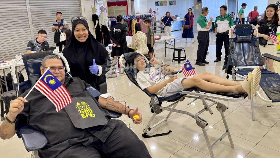 民众边献血边挥国旗 为槟城中央医院筹200包血浆