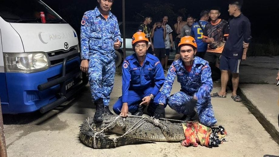 (保佛12日讯)保佛甘榜小克里雅斯(Kg Klias Kecil)周四(11日)傍晚传出一宗鳄鱼闯入民宅范围的惊险事件,一头重达80公斤、长约7尺的雌性鳄鱼出现在村民住家后方厨房附近,所幸民防部队迅速出动将它捕获。