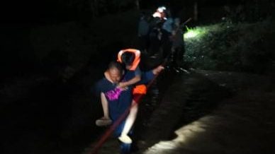 4户家庭共12人到樟仑迪莱瀑布区嬉水,不料突遇山水湍急上涨,导致回程受阻被困河对岸,所幸经消拯队紧急救援,全员平安脱险。