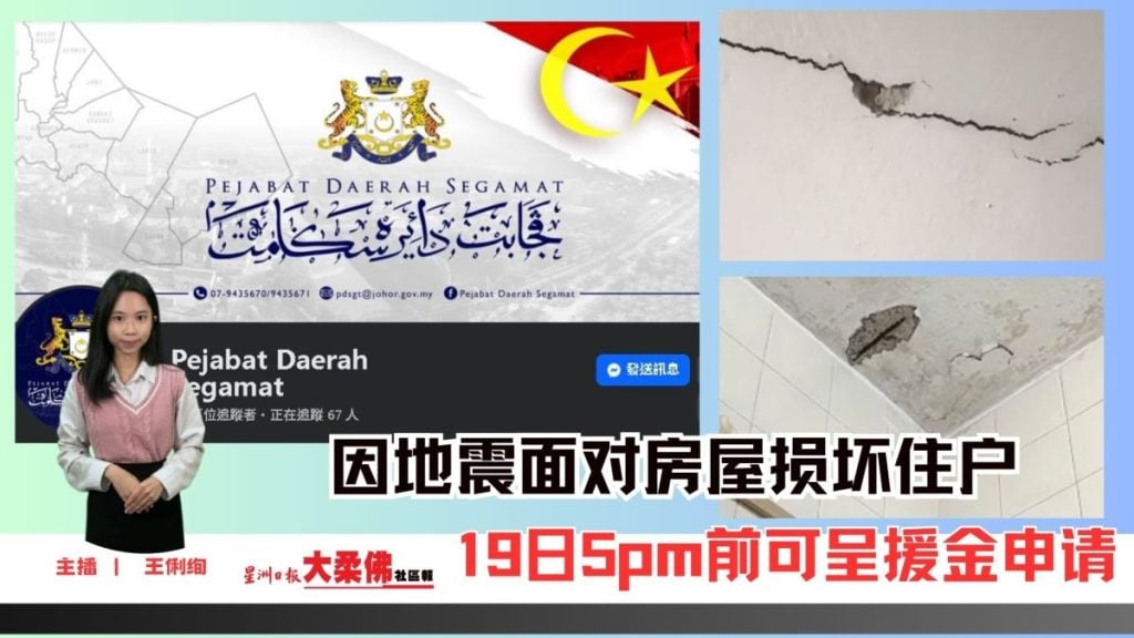 大柔佛三分钟 | 因地震面对房屋损坏住户 19日5pm前可呈援金申请