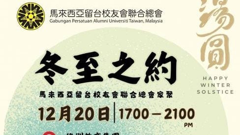 由马来西亚留台校友会联合总会(留台联总)主办的 “冬至之约・马来西亚留台校友会联合总会家聚”将于12月20日(星期六)下午5时至晚上9时在绿洲教育集团举行,餐席即日起开卖,欢迎各属会及留台校友齐聚一堂,在温馨佳节中延续留台情谊。
