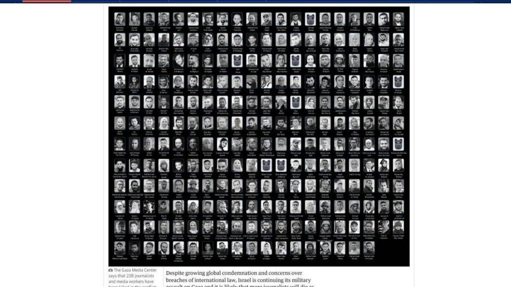 “无国界记者组织”(RSF)表示,来自70多个国家的250多家媒体今天在头版或网站首页发起抗议,报道以色列在加沙的军事行动中杀害了上百名记者。