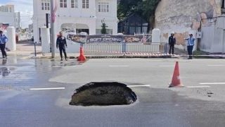 今午4时许,新港Jalan Kenari突然地陷爆出大坑洞,幸好当时没有车辆经过。