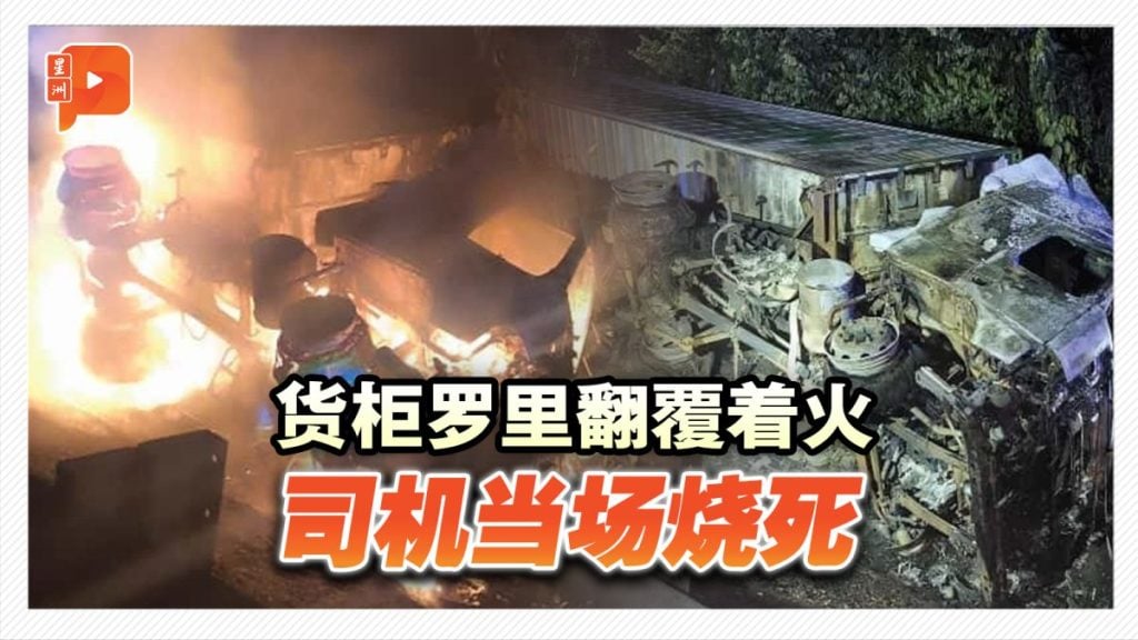南北大道罗里翻覆起火 司机受困驾驶座烧死