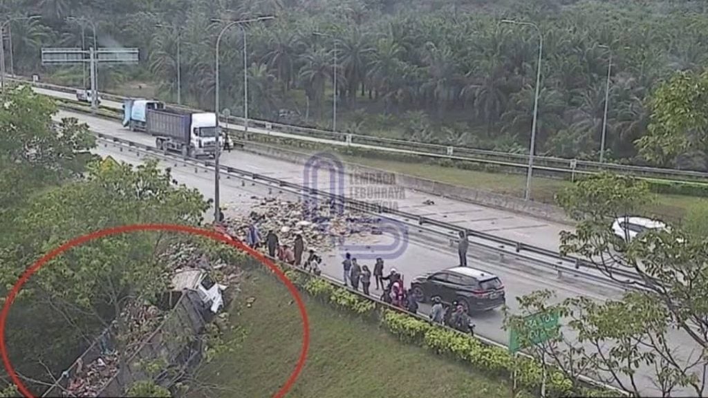 南北大道朝北方向419.6公里武吉达卡收费站入口的路段,今午发生运载垃圾的罗里车祸,造成当地交通大堵塞!