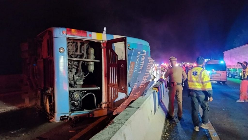 泰国北部上周六晚发生一起交通意外,一辆载有38名外国游客的旅游巴士在清迈市南邦府坤丹山道发生交通意外侧翻,造成10多人受伤,其中两人伤势严重,但无人死亡。