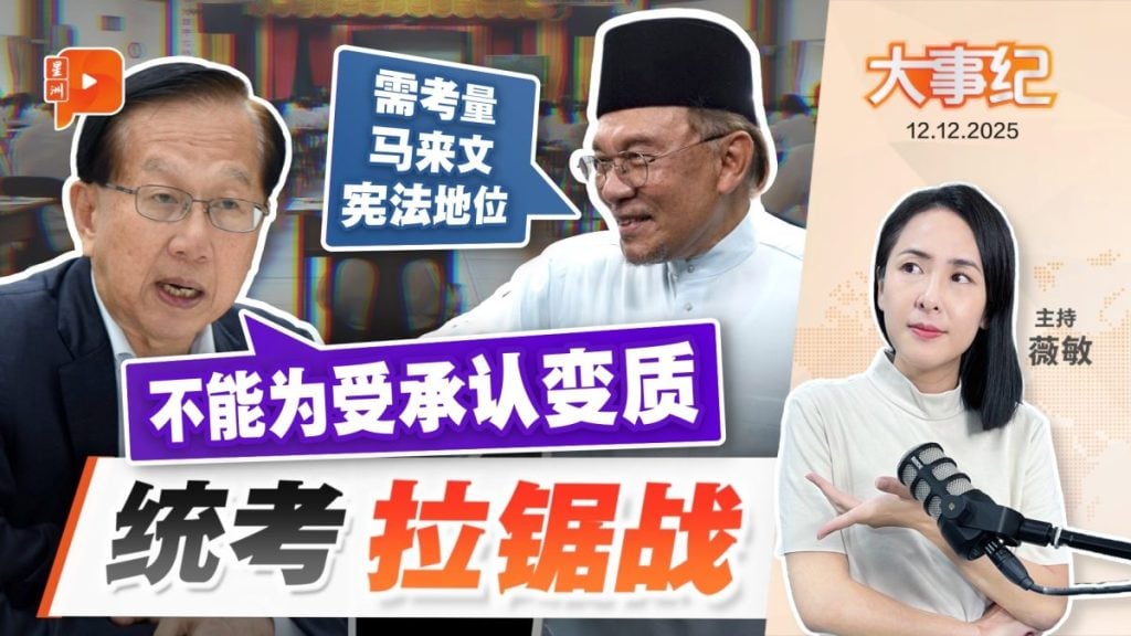 承认统考课题引发热议。董总坚持统考本质不可妥协,强调政府若不承认只会损失人才。首相安华则提醒,多语诉求必须顾及马来语宪法地位,国际学校学生也必须通过马来语考核。 12月12日 #百格大事纪,由 #薇敏 帮你汇整今日重点时事。 👉 董总:不为受承认牺牲统考特质 👉 回应统考与英语争议 安华:须考虑马来语地位 👉 上诉驳回吉政府上诉 判“禁赌”政策违宪 👉 服装指南风波再起 凸显霸权主义、执行走样? 👉 泰国火速解散国会 大选提前启动 👉 罗里失控闯逆向车道 南北大道车祸3伤